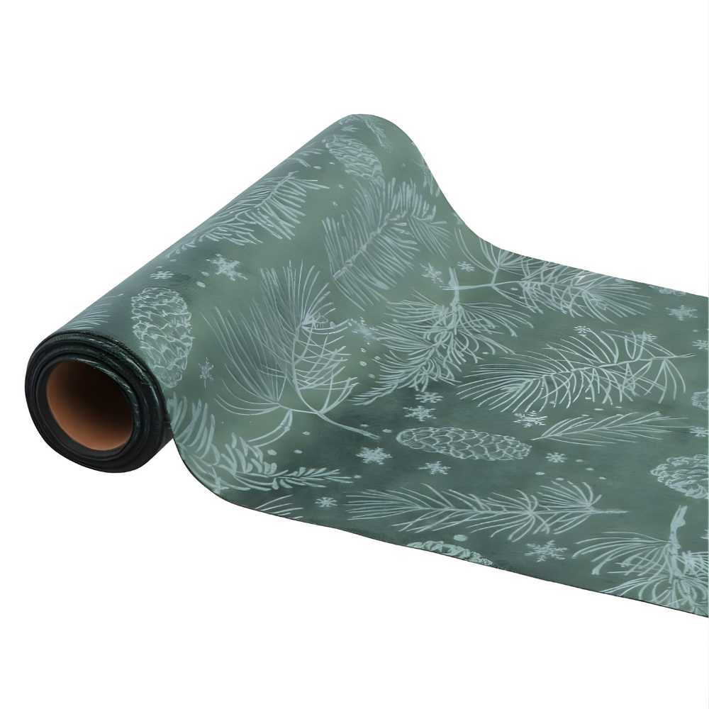 3 Meter Velours Tischläufer Weihnachten, Zapfen, in Dunkelgrün, 28 cm