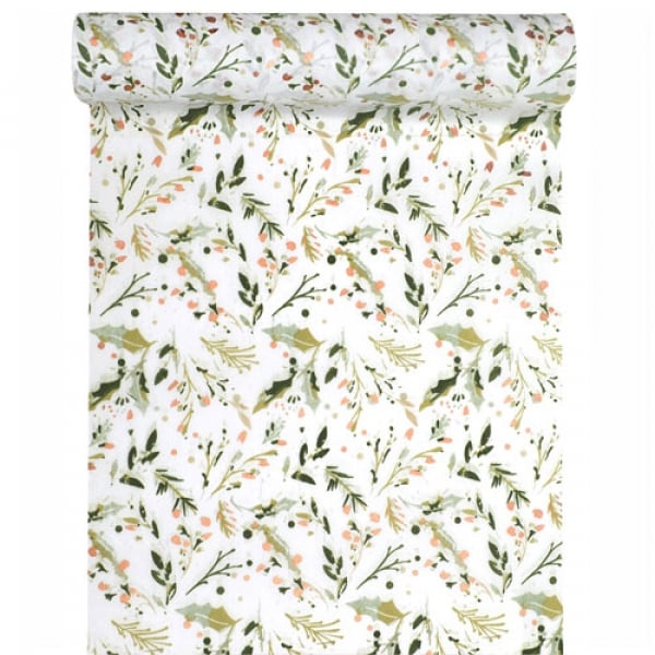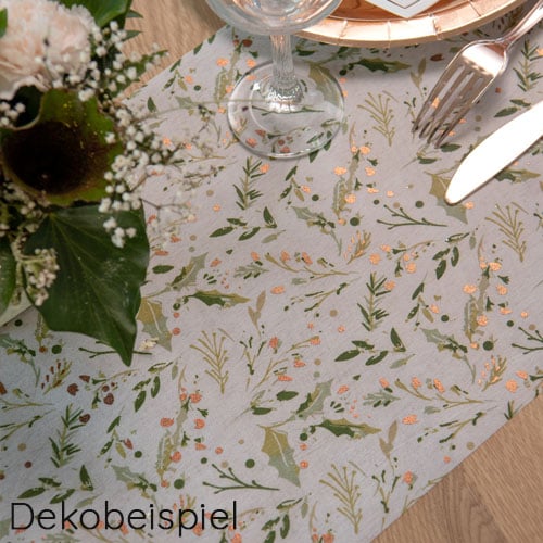 2,5 Meter Vlies Tischläufer Weihnachten, Ilex Winterbeeren in Grün/Kupfer, 30 cm