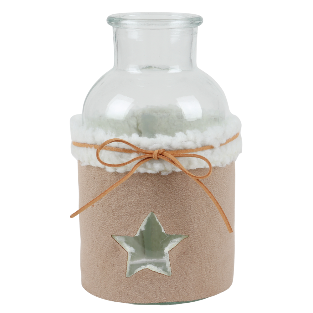 Große Glas Flaschen Vase Weihnachten, Stern mit Verzierung, 20 cm