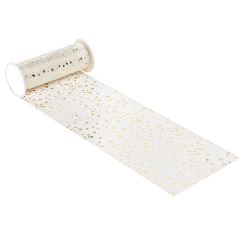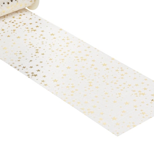 10 Meter Vlies Tischläufer Weihnachten mit Sternen in Weiß/Gold, 20 cm
